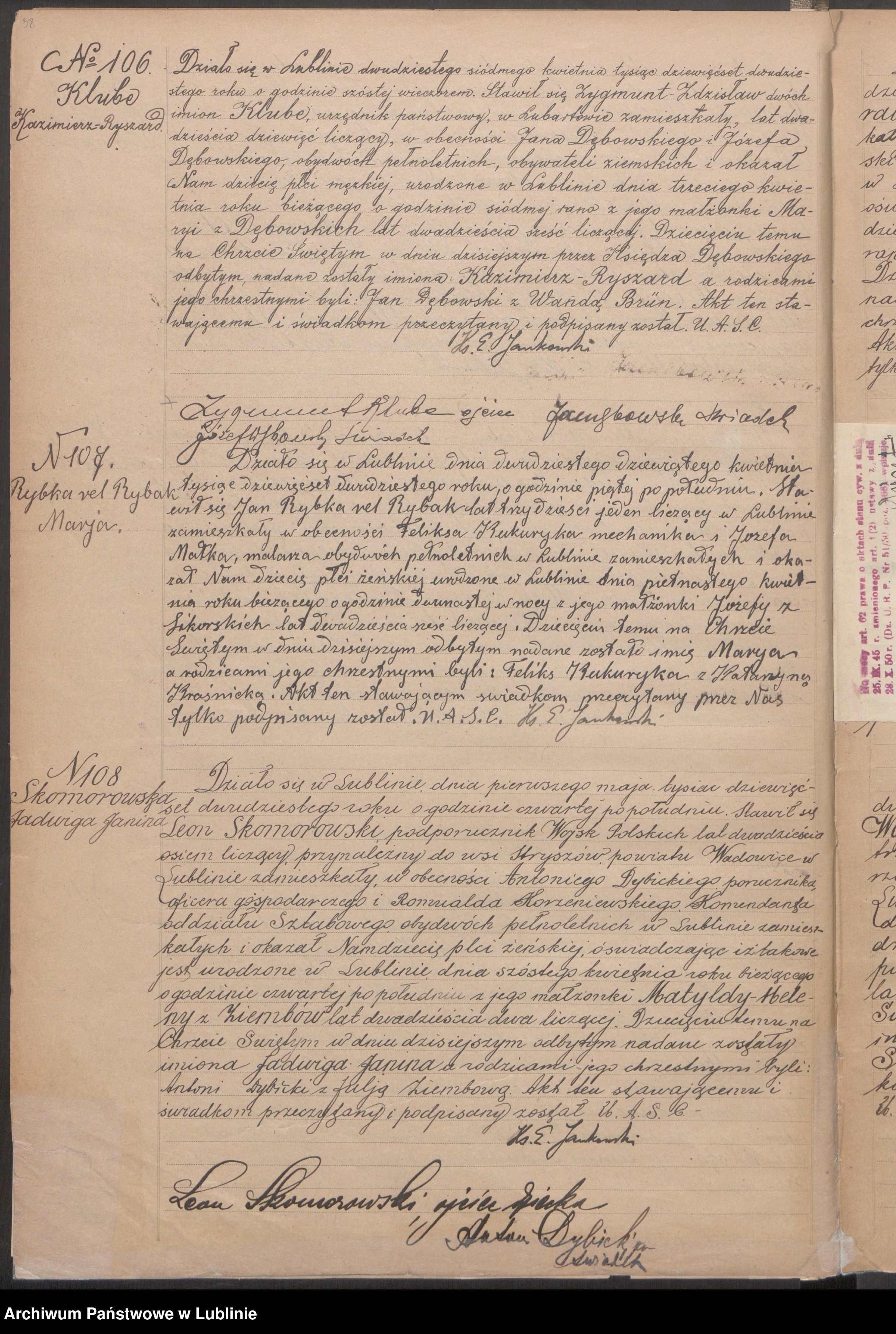 | Matka | Józefa Rybka vel Rybak (z domu Sikorska), ur. 10 sier. 1893, Lublin-Lubartowska, lubelskie, Polska zm. data nieznana | |