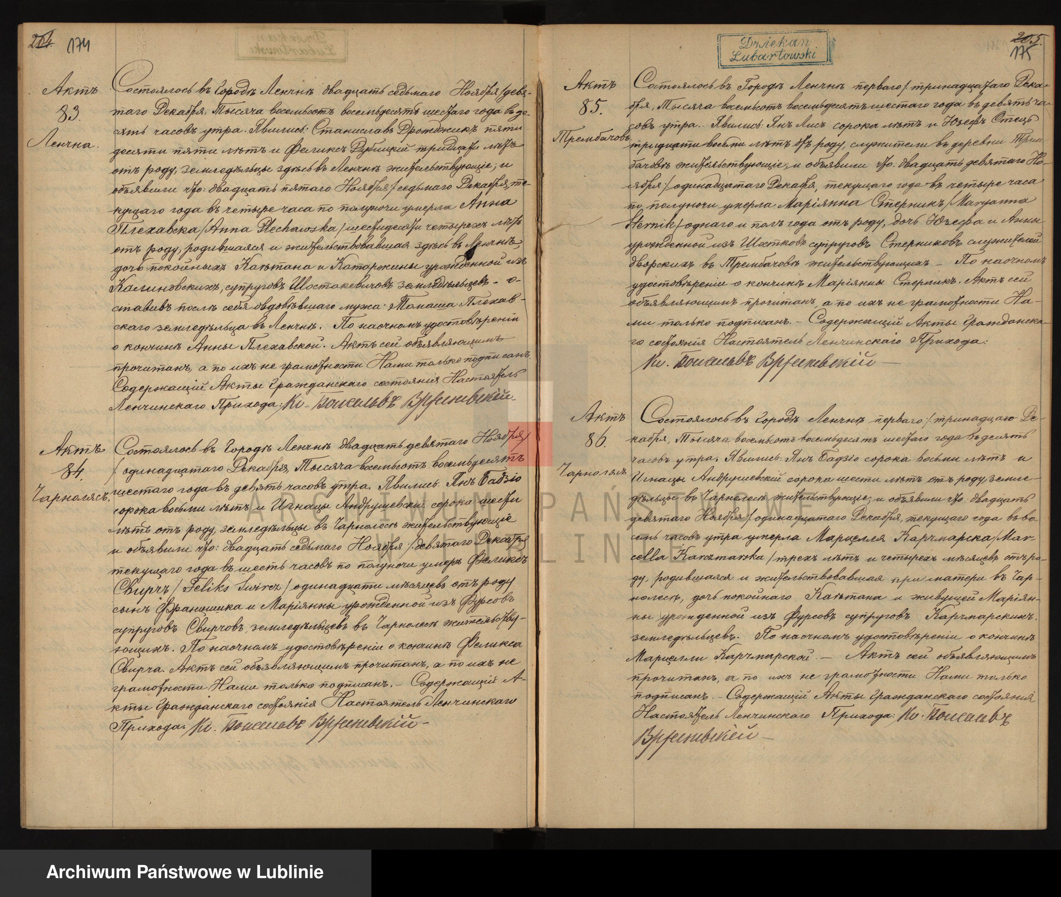| Rejestracja cywilna | 23 czer. 1821 | Łęczna - Parafia św. Marii Magdaleny, lubelskie, Polska [1] |