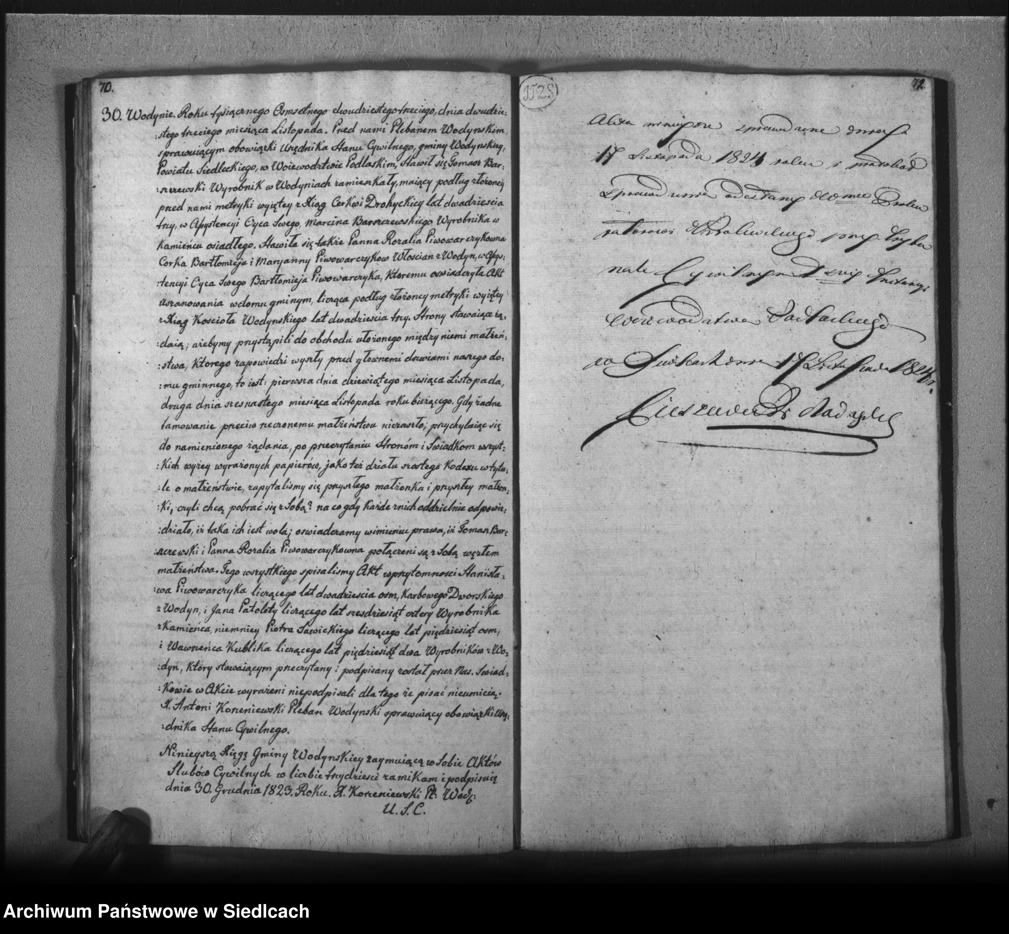 | Ślub | 23 list. 1823 | Wodynie - Parafia św. Apostołów Piotra i Pawła, siedlecki, mazowieckie, Polska [1] |